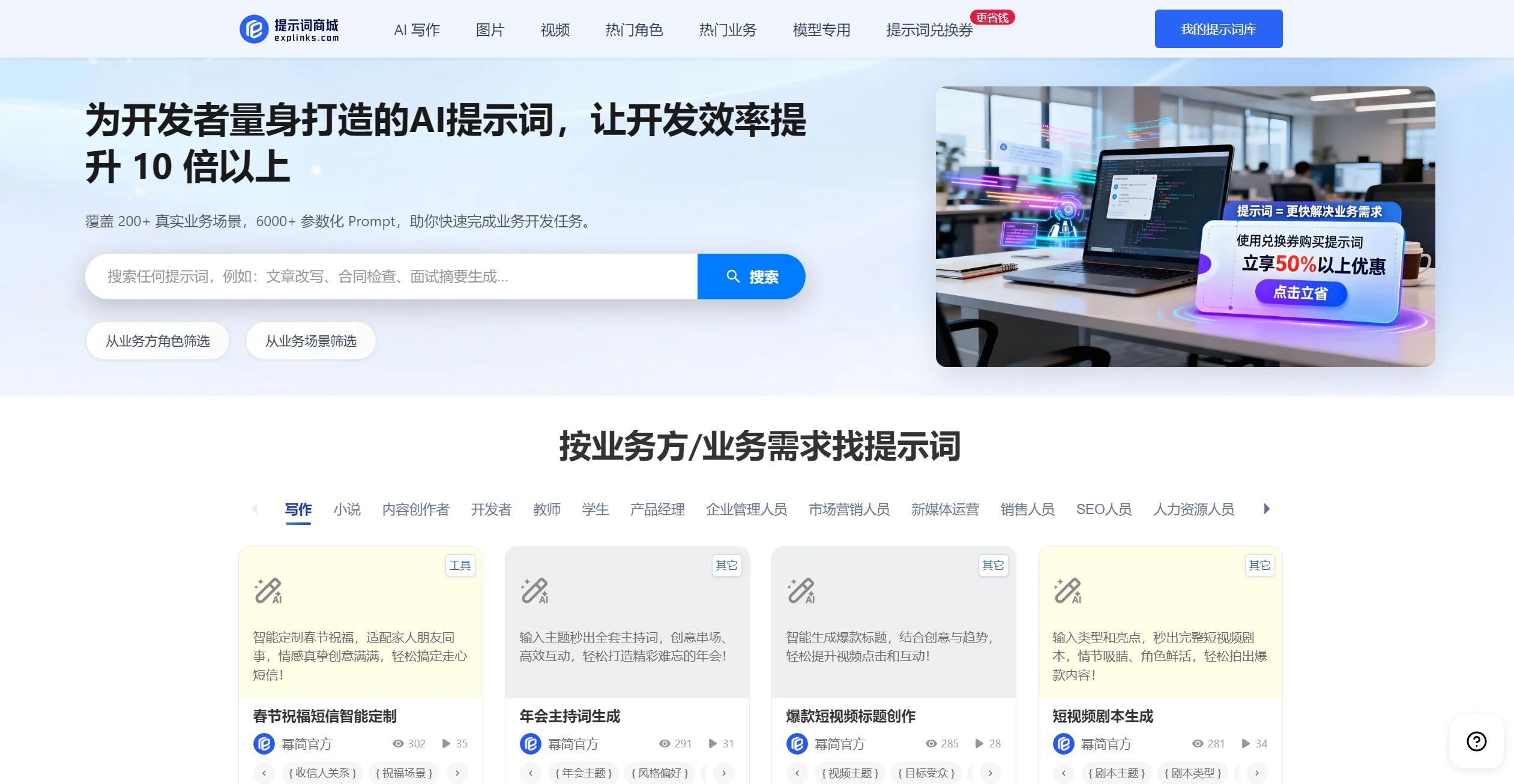 - 2. 幂简AI提示词商城官网 - https://prompts.explinks.com/